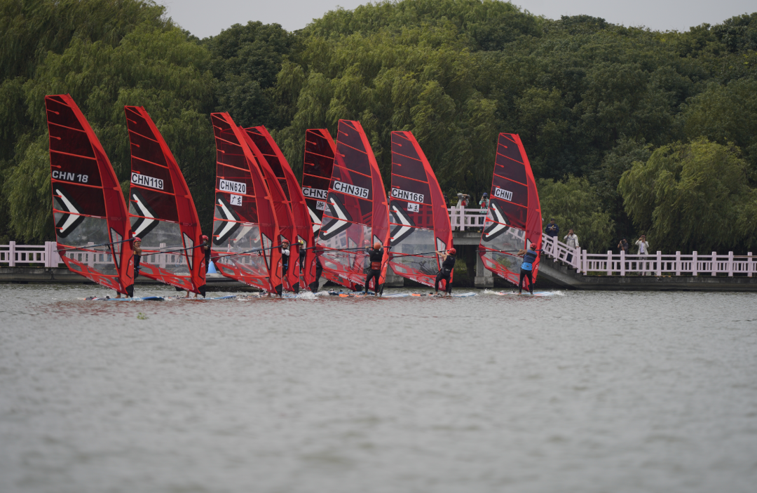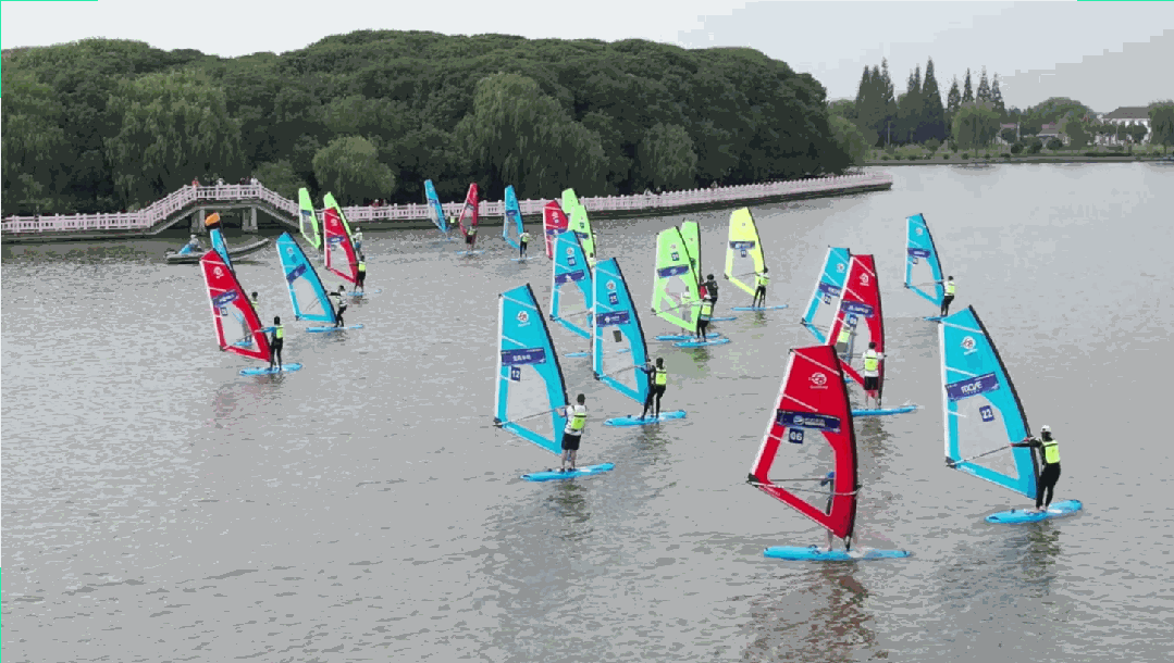 大师组选手在比赛中上海是一座依水而生、因水而兴的城市,有着深厚的水上运动历史底蕴,是中国帆船帆板运动奥运冠军的摇篮,也成功打造了众多精品水上赛事。本届赛事举办地青浦区将以此次中国帆板大师赛为契机,以金坞半岛水上基地等为主要阵地,不断集聚水乡体育能量,助推当地文化传播,打通文旅融合、以体带产的乡村振兴之路。本次国家级帆板赛事落户水乡金泽,是高水平赛事助力乡村振兴发展的积极探索,旨在通过“体育+旅游”的形式与乡村振兴相结合,以水上运动项目为抓手,将乡村体育健身、休闲体育、体育赛事串联,打造集服务、品质、休闲于一体的乡村生活新体验,积极推动美丽乡村建设。金泽将利用得天独厚的自然优势,做好具有水乡特色的“一镇一品”水上项目,以“体育+X”发展模式,打造“千帆竞发,百舸争流”的水上嘉年华活动,展示长三角示范区生态岸线美丽风景,探索乡村振兴发展新路径。2023年第五届中国帆板大师赛的举办,将进一步推动帆板等水上运动项目在申城的普及与提高,丰富品牌赛事活动供给,打造兼具专业竞技性和群众参与性的“海派”景观体育。未来,一系列精品帆船帆板赛事的创办和引进,将助力拥有江河湖海广袤优势资源的上海乃至长三角地区继续乘风破浪。本次比赛由中国帆船帆板运动协会、上海市体育总会、青浦区政府主办,上海市社会体育管理中心 (上海市体育竞赛管理中心)、青浦区体育局、金泽镇政府承办。