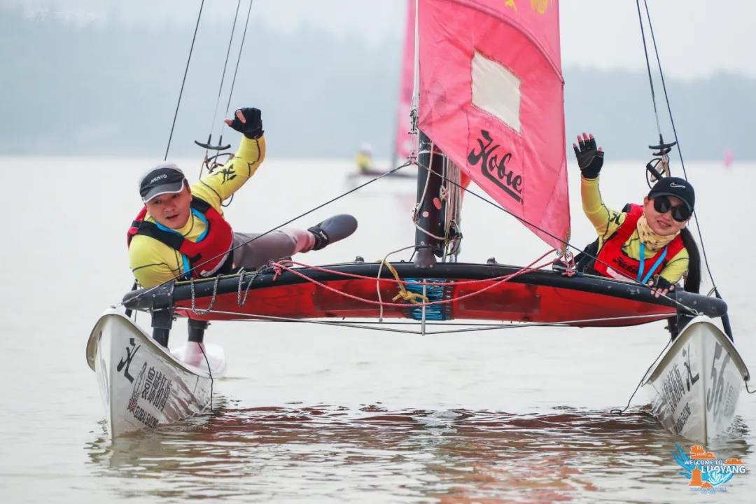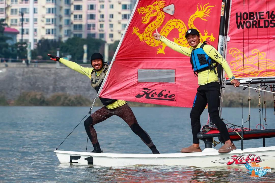 在最后一个比赛日,选手们还收到了赛事组委会准备的一个惊喜。由于比赛临近结束时风力大幅减弱,组委会便在正赛结束后增加了一轮趣味赛,将洛阳本地历史悠久的龙舟运动与时尚帆船比赛进行创意结合,选手既可以依靠风帆的动力前进,也可以用龙舟桨划桨前进。参赛选手收获了一次难忘的体验。
