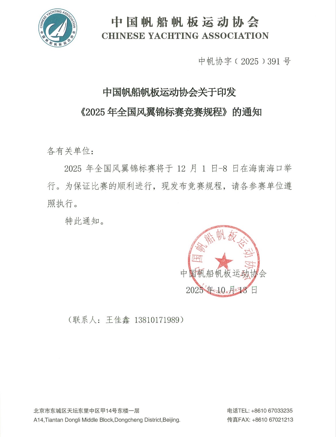 中国帆船帆板运动协会关于印发《2025年全国风翼锦标赛竞赛规程》的通知