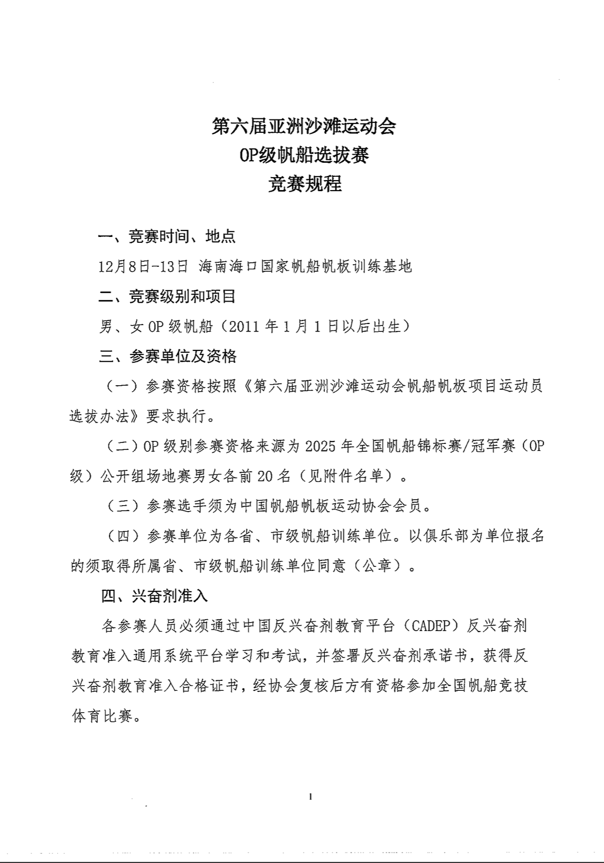 第六届亚洲沙滩运动会及国家青年帆船帆板集训队选拔赛竞赛规程.pdf第六届亚洲沙滩运动会OP帆船选拔赛竞赛规程.pdf
